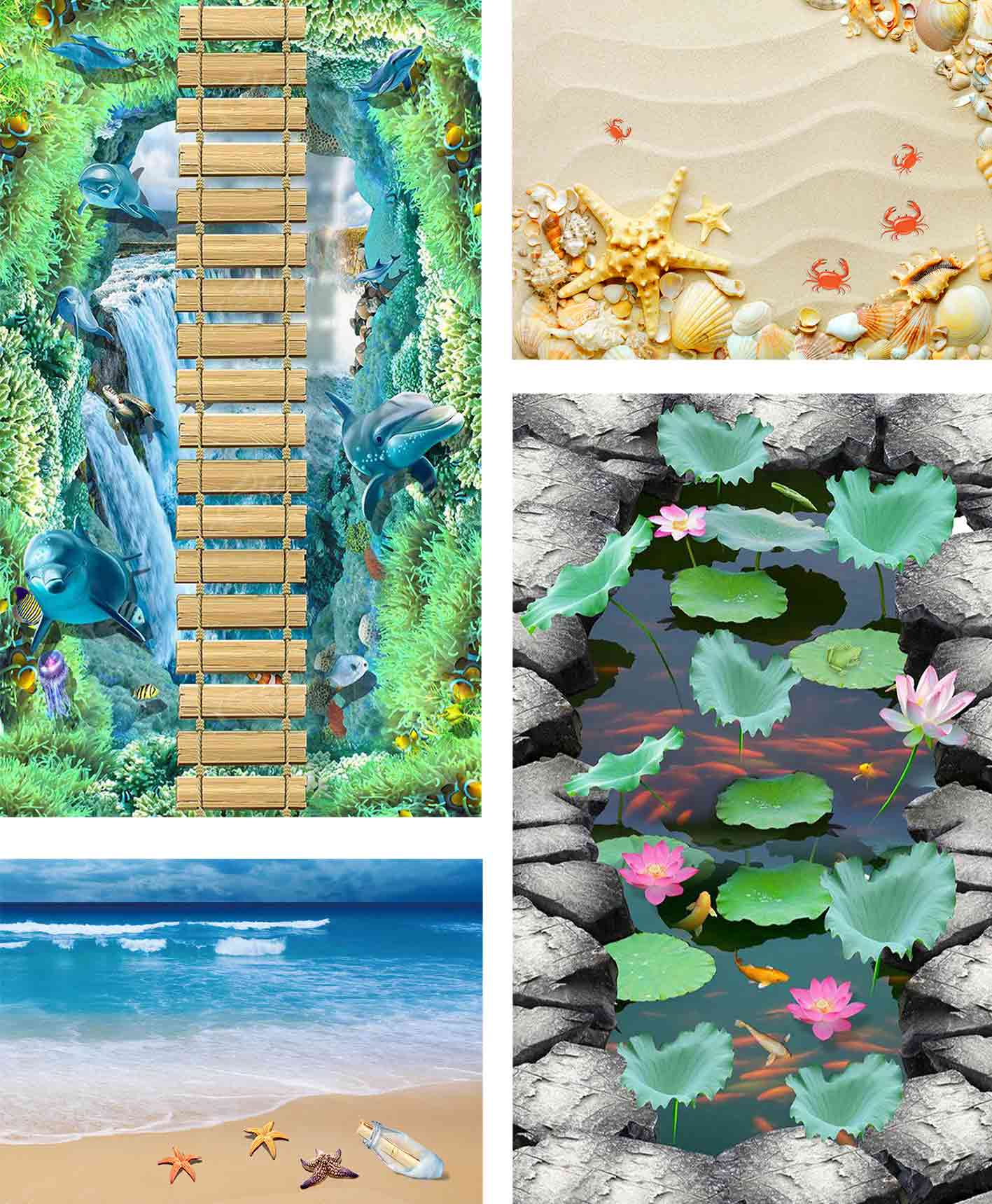 3D Тематический этажНапольные 3D-наклейки с возможностью индивидуального оформления позволяют создавать собственные дизайны с помощью высококачественной печати; многослойная структура обеспечивает мягкость, износостойкость и подходит для отелей, торговых центров и различных коммерческих помещений.